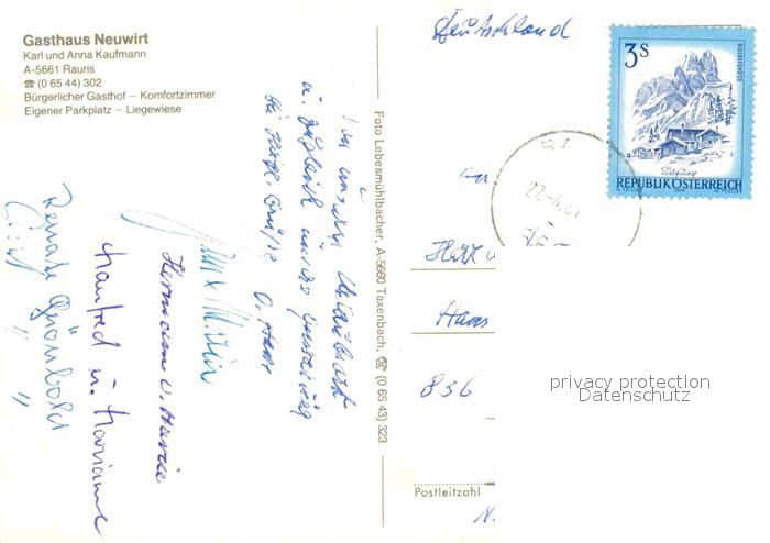 12602848 alte Postkarte Rauris Gasthaus Neuwirt postalisch gelaufen Erhaltung siehe scans [LiesaD40] KatCode: 11390322050617