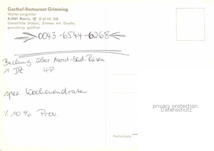 72673407 Rauris Gasthof Restaurant Grimming Restaurant Kaminzimmer postalisch nicht gelaufen Erhaltung siehe scans [FriedD77] KatCode: 11390322050617