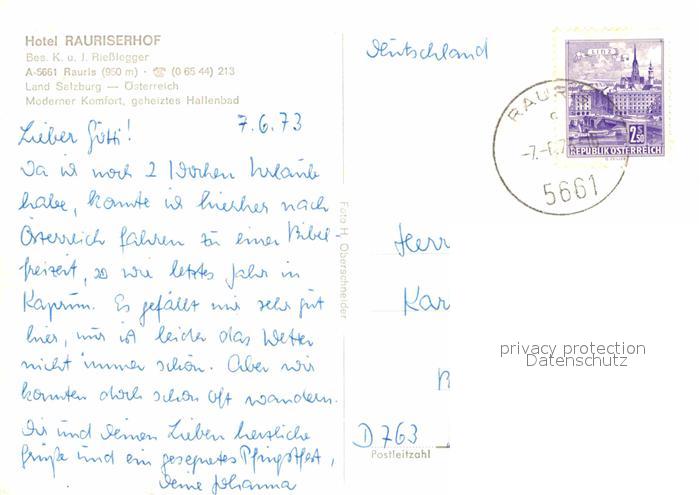 72707047 alte Postkarte Rauris Hotel Rauriserhof postalisch gelaufen Erhaltung siehe scans [FriedD77] KatCode: 11390322050617