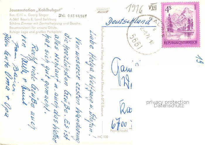12880958 alte Postkarte Rauris Jausenstation Kohlhubgut postalisch gelaufen Erhaltung siehe scans [KathaD81] KatCode: 11390322050617