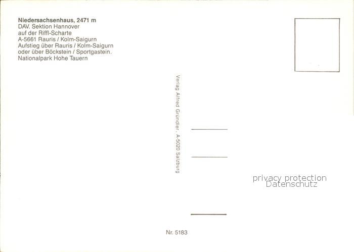 72547755 Rauris Niedersachsenhaus DAV Sektion Hannover Hohe Tauen postalisch nicht gelaufen Erhaltung siehe scans [LiesaD40 kv019box] KatCode: 11390322050617