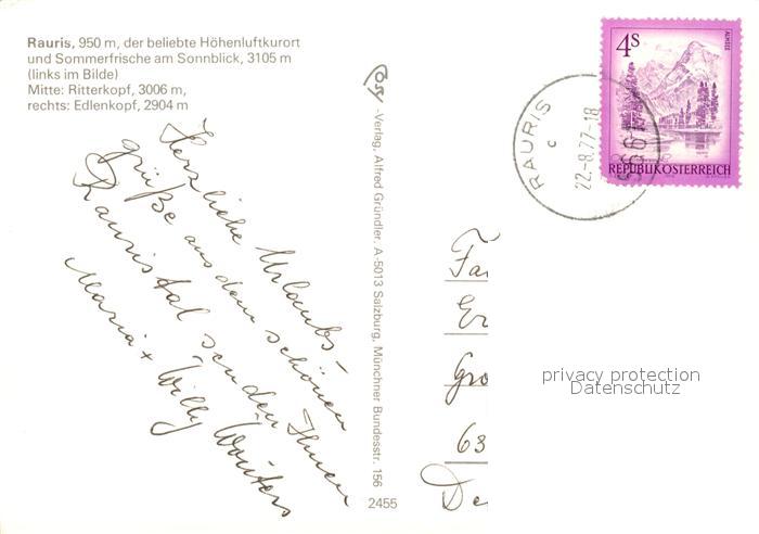 73272082 alte Postkarte Rauris Ortsansicht mit Kirche Sommerfrische Sonnblick Ritterkopf Edlenkopf Hohe Tauern postalisch gelaufen Erhaltung siehe scans [FriedD77] KatCode: 11390322050617