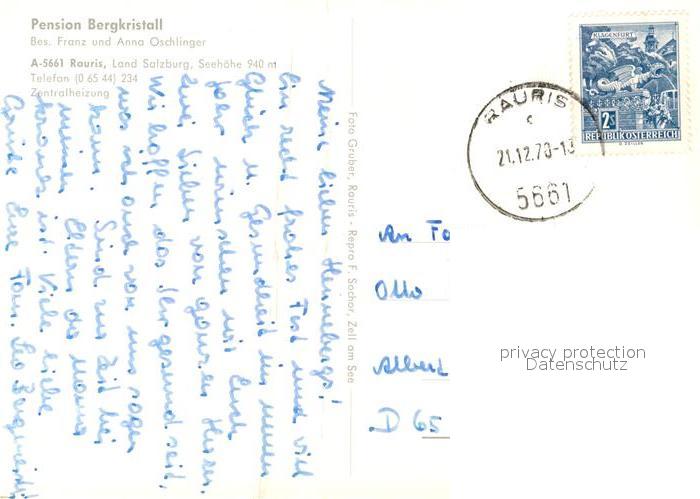 73357253 alte Postkarte Rauris Pension Bergkristall im Winter Alpen postalisch gelaufen Erhaltung siehe scans [FriedD77] KatCode: 11390322050617