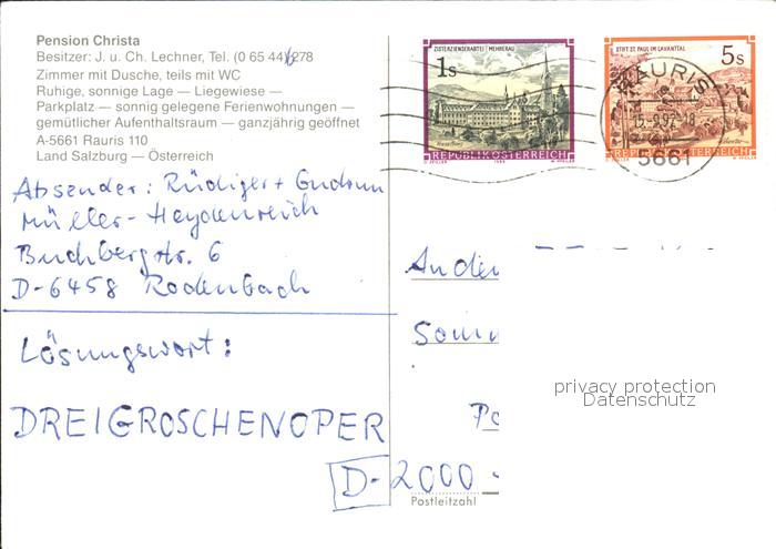 72467351 alte Postkarte Rauris Pension Christa postalisch gelaufen Erhaltung siehe scans KatCode: 11390322050617