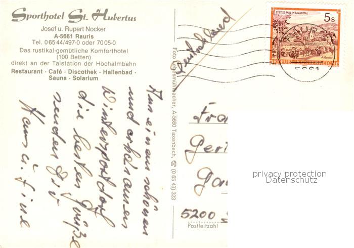 73590263 alte Postkarte Rauris Sporthotel St. Hubertus im Winter postalisch gelaufen Erhaltung siehe scans [FriedD77] KatCode: 11390322050617