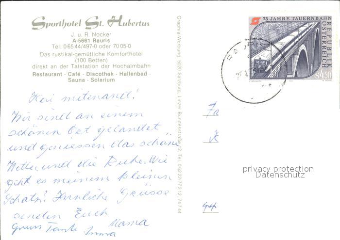 72170509 alte Postkarte Rauris Sporthotel St. Hubertus postalisch gelaufen Erhaltung siehe scans KatCode: 11390322050617