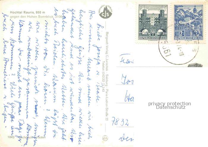 74042439 alte Postkarte Rauris-Woerth AT mit Hohen Sonnblick postalisch gelaufen Erhaltung siehe scans [WerneD78] KatCode: 11390322050617