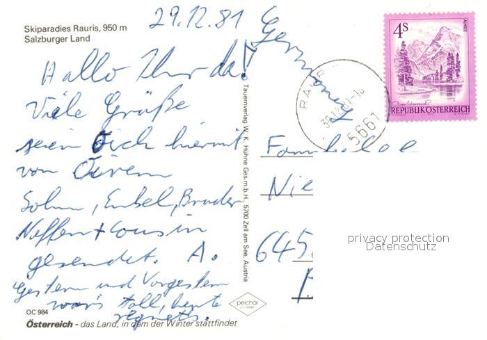 73259363 alte Postkarte Rauris postalisch gelaufen Erhaltung siehe scans [NatalD47] KatCode: 11390322050617