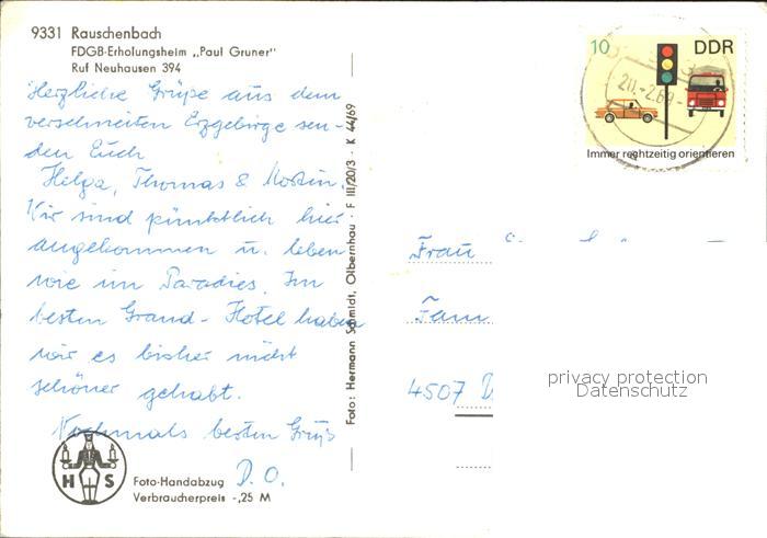 72115907 alte Postkarte Rauschenbach Neuhausen FDGB Erholungsheim Paul Gruner postalisch gelaufen Erhaltung siehe scans KatCode: 11110014177300