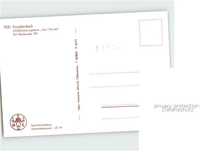 72081149 Rauschenbach Neuhausen FDGB Heim Paul Gruner postalisch nicht gelaufen Erhaltung siehe scans KatCode: 11110014177300