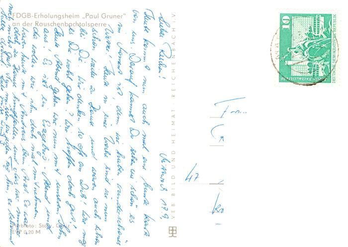 73905495 alte Postkarte Rauschenbachtalsperre Neuhausen Erzgebirge FDGB Erholungsheim Paul Gruner Teilansichten postalisch gelaufen Erhaltung siehe scans [FriedD77] KatCode: 11110014177300