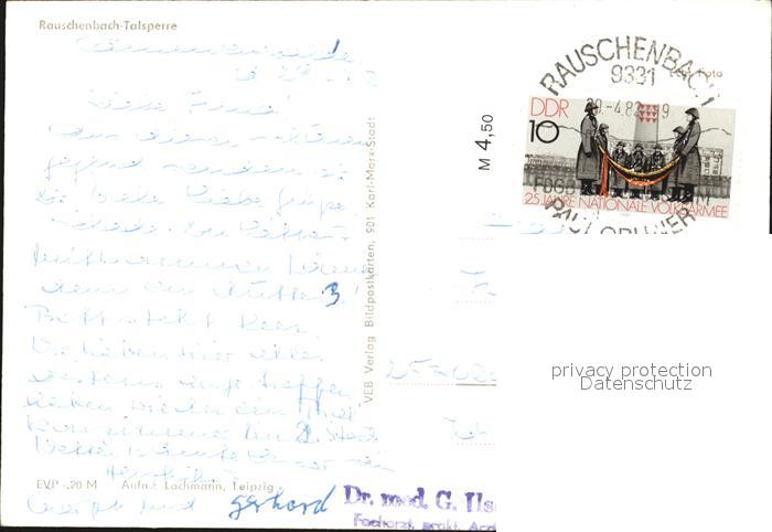72472364 alte Postkarte Rauschenbachtalsperre postalisch gelaufen Erhaltung siehe scans KatCode: 11110014177300