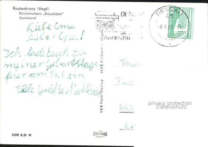 72015790 alte Postkarte Rautenkranz Vogtland Kinderkurheim Kraushuebel Speisesaal postalisch gelaufen KatCode: 11110014178360