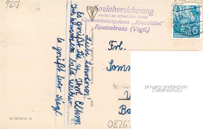 43057659 alte Postkarte Rautenkranz Vogtland Kurerholungsheim postalisch gelaufen Erhaltung siehe scans [KathaD81] KatCode: 11110014178360