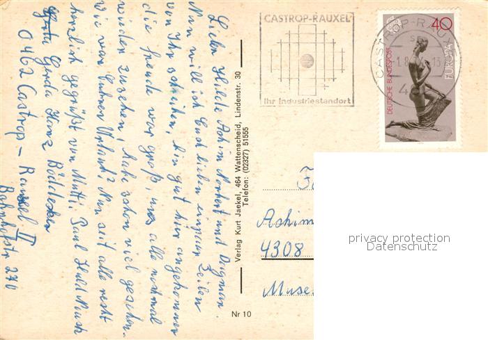 73071239 alte Postkarte Rauxel Motiv aus dem Stadtgarten Fontaene Hallenbad Bahnhof postalisch gelaufen Erhaltung siehe scans [FriedD77] KatCode: 11110005562004