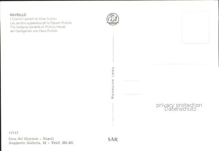 Ravello I Giardini pensili di Villa Rufolo Garten mit Meerblick postalisch nicht gelaufen Erhaltung siehe scans