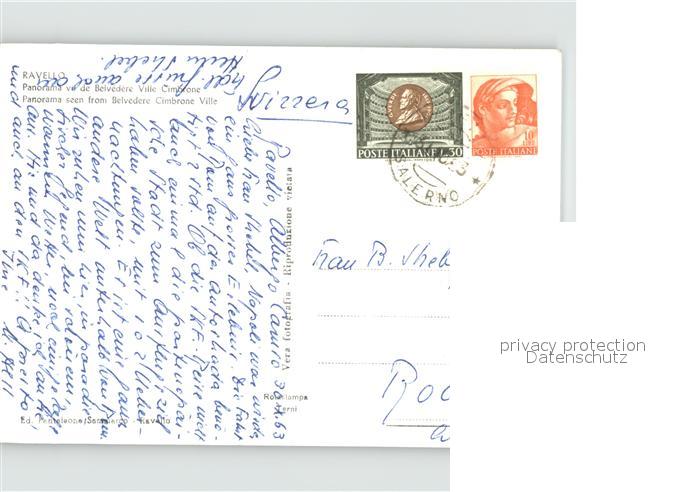 old postcard Ravello Panorama dal Belvedere Villa Cimbrone postalisch gelaufen
