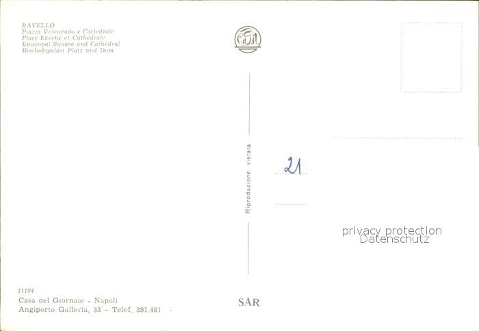 Ravello Piazza Vescovado e Cattedrale Bischofspalast Platz Dom postalisch nicht gelaufen Erhaltung siehe scans