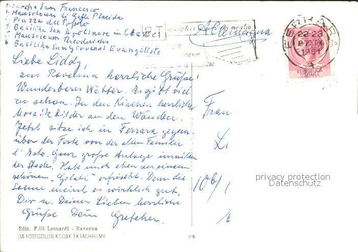 old postcard Ravenna Italia Kirche Kreuzgang Turm Basilika Mausoleum postalisch gelaufen Erhaltung siehe scans