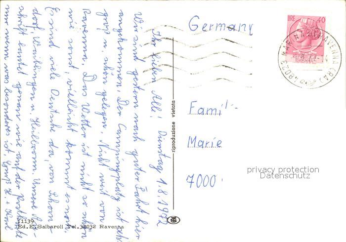 old postcard Ravenna Italia Villaggio del Sole International Camping Marina Romea Details postalisch gelaufen