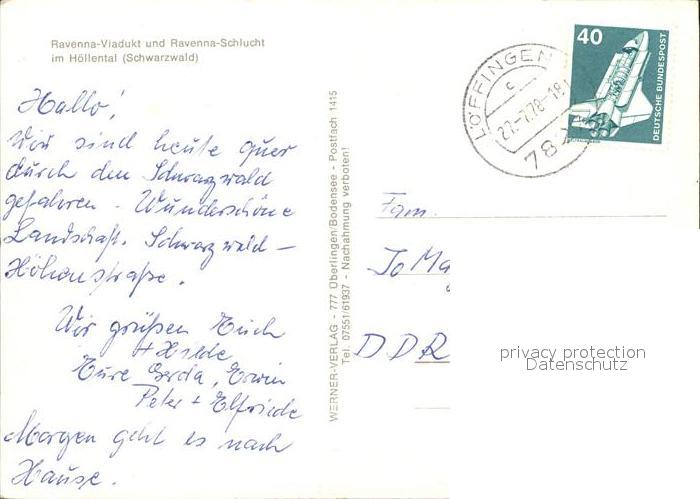 72409760 alte Postkarte Ravennaschlucht Viadukt im Hoellental postalisch gelaufen Erhaltung siehe scans KatCode: 11110008315052