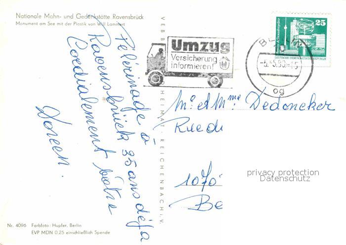 72716479 alte Postkarte Ravensbrueck Nationale Mahn- und Gedenkstaette Plastik von Will Lammert postalisch gelaufen Erhaltung siehe scans [LiesaD40] KatCode: 11110012065084