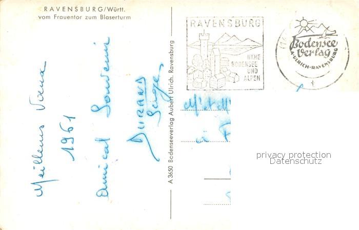 43492118 alte Postkarte Ravensburg W?rttemberg Blick vom Frauentor zum Blaserturm postalisch gelaufen Erhaltung siehe scans [LiesaD40] KatCode: