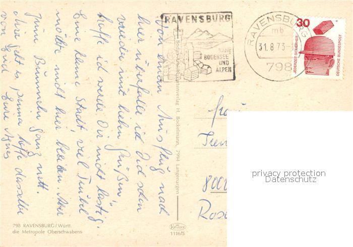 73253471 alte Postkarte Ravensburg Wuerttemberg Blaeserturm Mehlsack Obertor Panorama postalisch gelaufen Erhaltung siehe scans [KathaD81] KatCode: 11110008436064