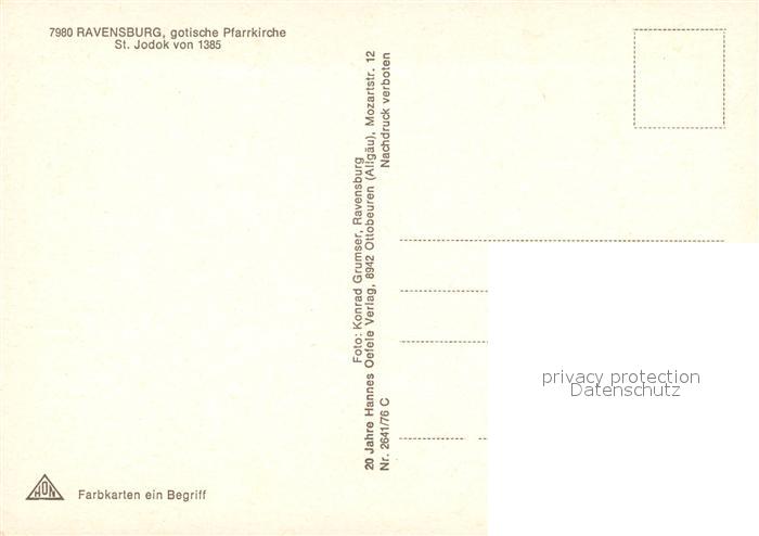 73181222 Ravensburg Wuerttemberg Gotische Pfarrkirche Sankt Jodok postalisch nicht gelaufen Erhaltung siehe scans [KathaD81] KatCode: 11110008436064