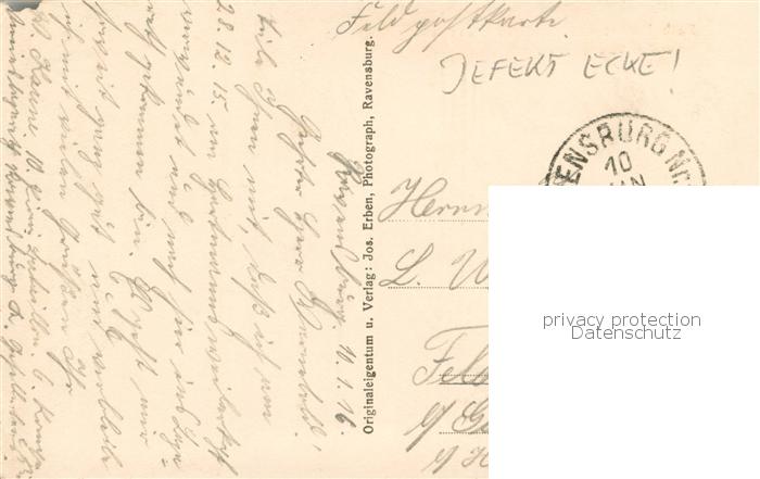 73780205 alte Postkarte Ravensburg Wuerttemberg Kath Gesellenhaus Vereinslazarett postalisch gelaufen Erhaltung siehe scans [WerneD78] KatCode: 11110008436064