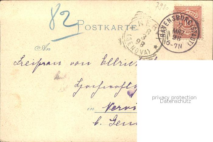 31705992 alte Postkarte Ravensburg Wuerttemberg Kirche Turm Veitsburg Obertor Schloss postalisch gelaufen Erhaltung siehe scans KatCode: 11110008436064