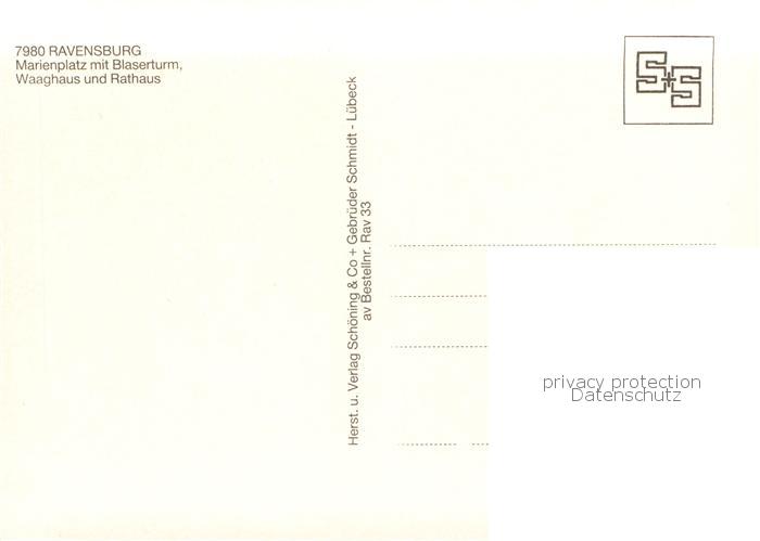 73795839 Ravensburg Wuerttemberg Marienplatz Blaserturm Waaghaus Rathaus postalisch nicht gelaufen Erhaltung siehe scans [FriedD77] KatCode: 11110008436064