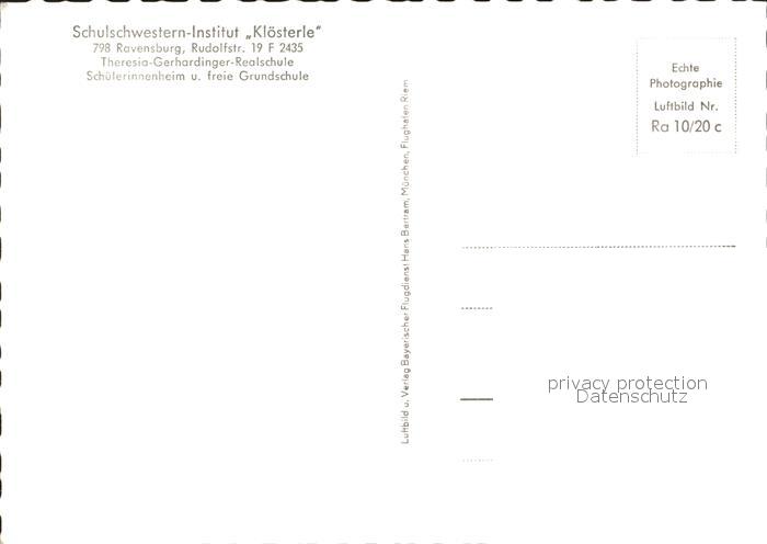 72059369 Ravensburg Wuerttemberg Schulschwestern Institut Kloesterle Fliegeraufnahme postalisch nicht gelaufen Erhaltung siehe scans KatCode: 11110008436064