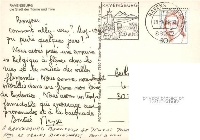 73563380 alte Postkarte Ravensburg Wuerttemberg Stadt der Tuerme und Tore postalisch gelaufen Erhaltung siehe scans [WerneD78] KatCode: 11110008436064