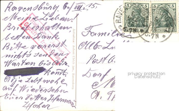 41839363 alte Postkarte Ravensburg Wuerttemberg Stadtansicht postalisch gelaufen Applikationen Erhaltung siehe scans KatCode: 11110008436064