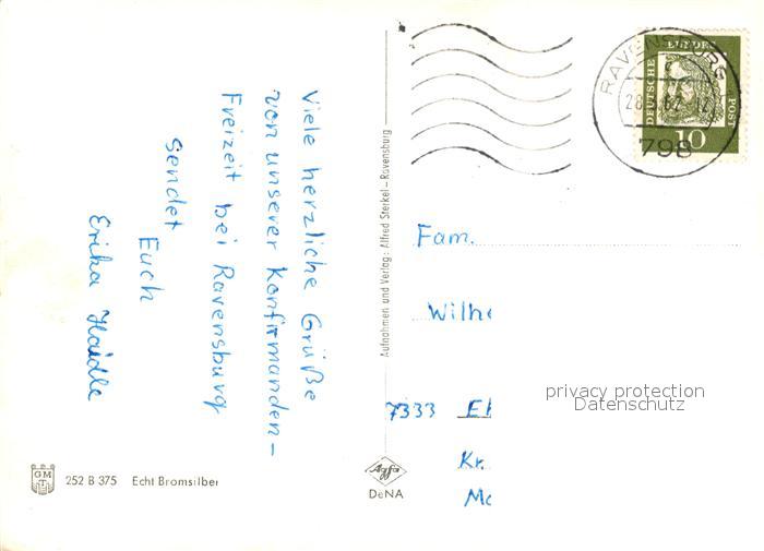 73335135 alte Postkarte Ravensburg Wuerttemberg Turm Park Kirchen Strasse Hochhaus postalisch gelaufen Erhaltung siehe scans [WerneD78] KatCode: 11110008436064