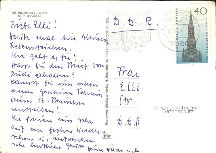 72420268 alte Postkarte Ravensburg Wuerttemberg Veitsburg Gruener Turm Blaserturm Lederhaus Marienplatz postalisch gelaufen Erhaltung siehe scans KatCode: 11110008436064