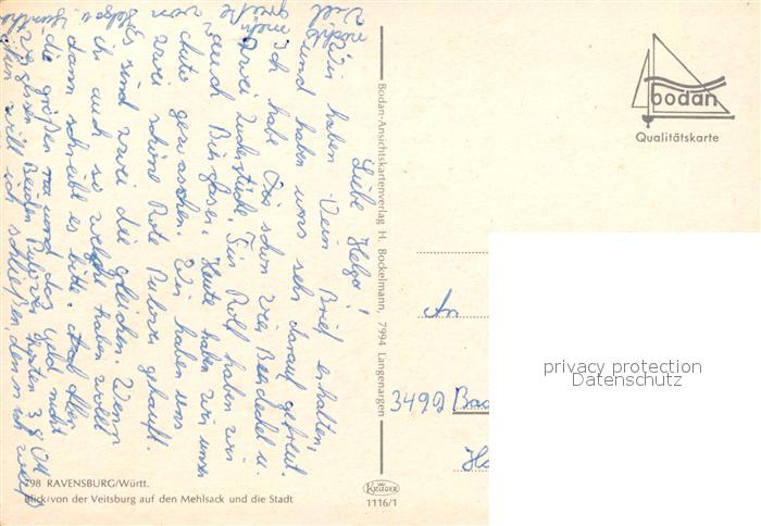 73066545 Ravensburg Wuerttemberg Veitsburgblick auf Mehlsack und Stadt postalisch nicht gelaufen Erhaltung siehe scans [WerneD78] KatCode: 11110008436064