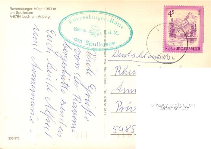 73168604 alte Postkarte Ravensburgerhuette am Spullersee Gaststube postalisch gelaufen Erhaltung siehe scans [WerneD78] KatCode: 11390