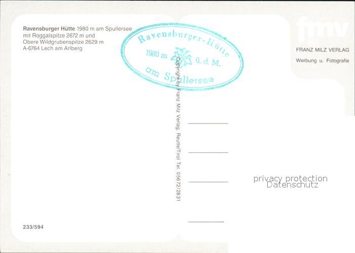 72549223 Ravensburgerhuette am Spullersee mit Roggalspitze postalisch nicht gelaufen Erhaltung siehe scans [LiesaD40 kv021box] KatCode: 11390