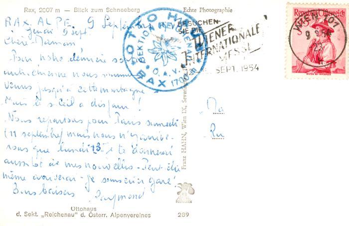 73917668 alte Postkarte Rax 2009m Steiermark AT Blick zum Schneeberg postalisch gelaufen Erhaltung siehe scans [WerneD78] KatCode: 11390223061304