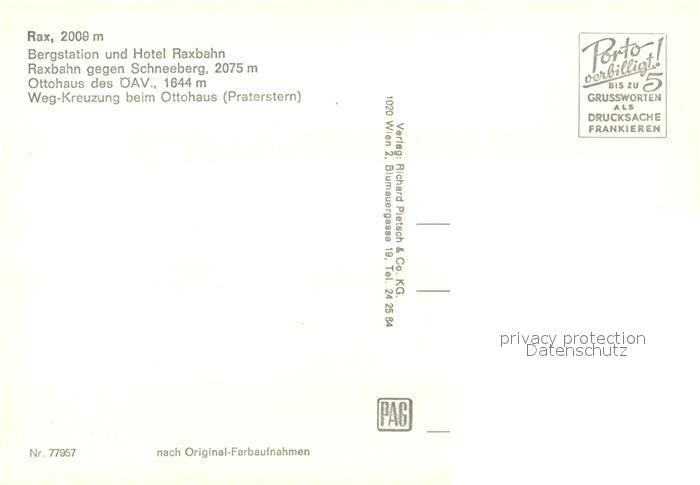 73065822 Rax Hotel Raxbahn Schneeberg postalisch nicht gelaufen Erhaltung siehe scans [KathaD81] KatCode: 11390223061304