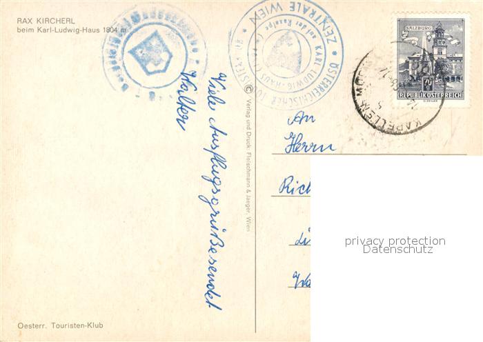 73482282 alte Postkarte Rax Kircherl Karl Ludwig Haus postalisch gelaufen Erhaltung siehe scans [KathaD81] KatCode: 11390223061304