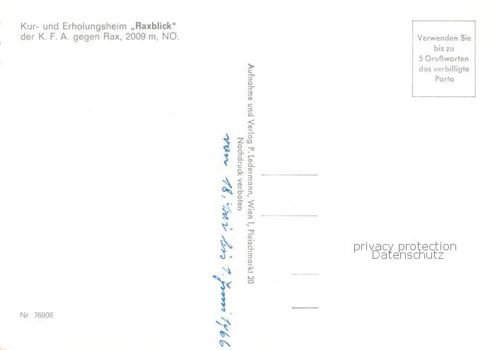 73776674 Rax Kur und Erholungsheim Raxblick postalisch nicht gelaufen Erhaltung siehe scans [WerneD78] KatCode: 11390223061304