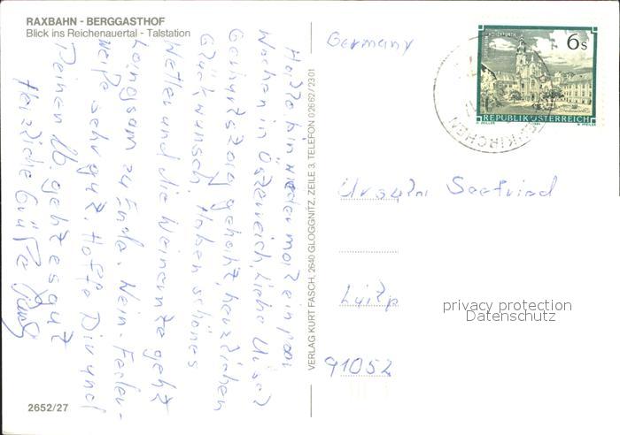 71908715 alte Postkarte Rax Luftseilbahn Berggasthof Reichenauertal Talstation postalisch gelaufen Erhaltung siehe scans KatCode: 11390223061304
