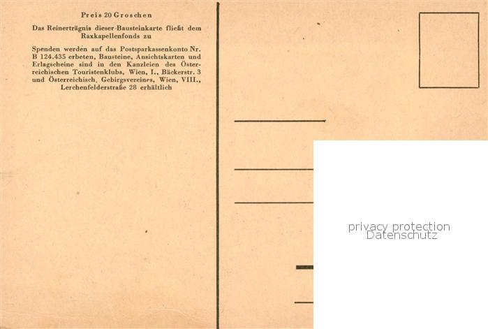 73236050 Rax Raxkapelle Kuenstlerkarte postalisch nicht gelaufen Erhaltung siehe scans [LiesaD40] KatCode: 11390223061304
