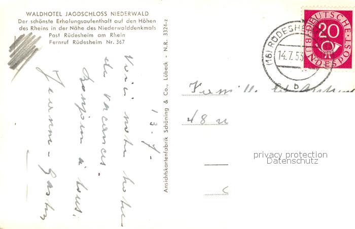 73566686 alte Postkarte R?desheim Rhein Waldhotel Jagdschloss Niederwald postalisch gelaufen Erhaltung siehe scans [LiesaD40] KatCode: