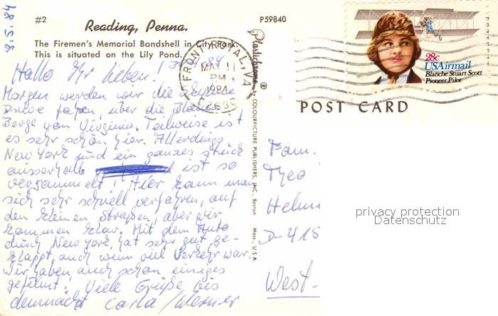 72893180 old postcard Reading Pennsylvania Konzerthalle postalisch gelaufen Erhaltung siehe scans [KathaD81] KatCode: 14140410000000