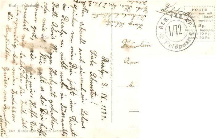 13920318 alte Postkarte Realp UR Panorama mit Furkabahn postalisch gelaufen Feldpost – Stempel Erhaltung siehe scans [FriedD77] KatCode: 11470220685204