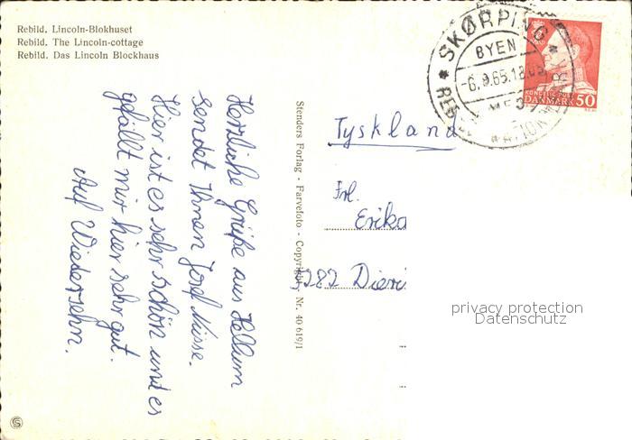old postcard Rebild Blokhuset Lincoln Blockhaus postalisch gelaufen Erhaltung siehe scans